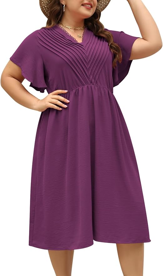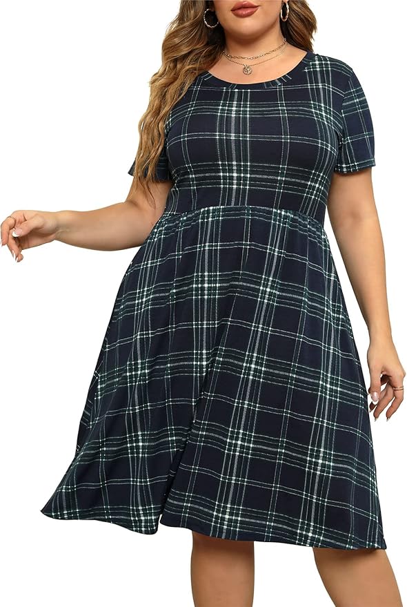 Plus Size Dresses for Curvy Women, Summer Casual Midi Dress with Empire Waist and Pocket