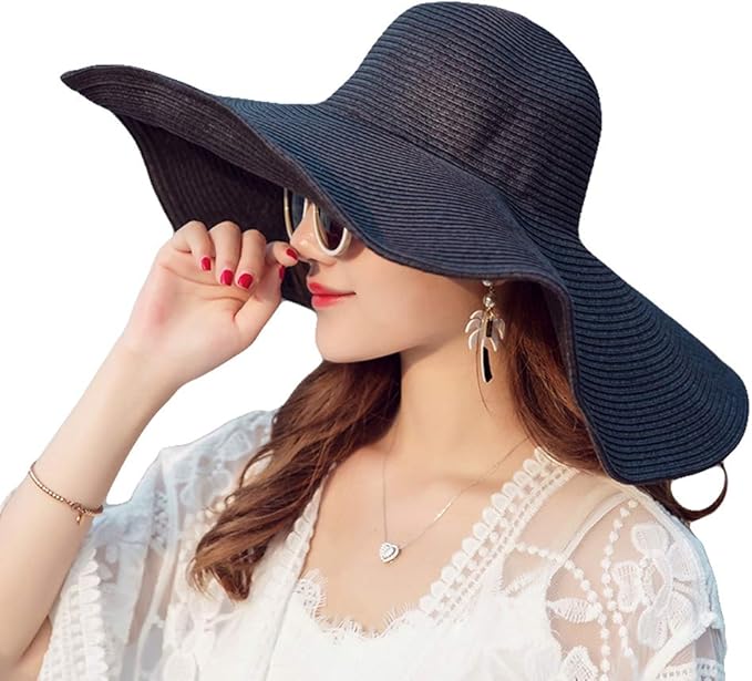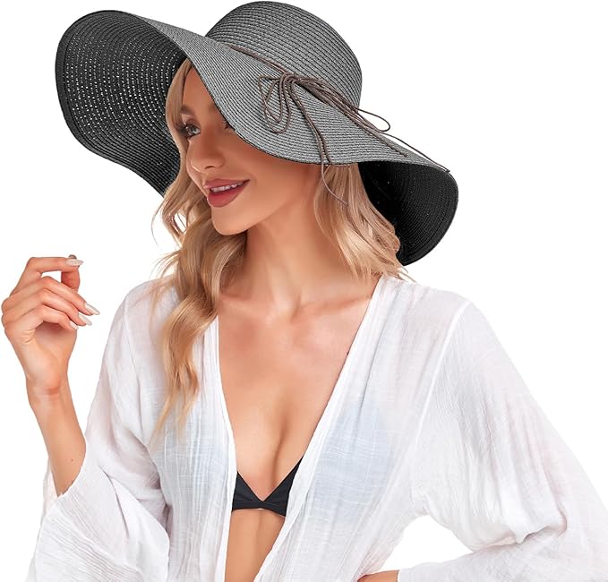 Beach Hats for Women, Straw Hats for Women Sun Hat Floppy, Wide Brim Hats for Women Foldable UPF 50+ UV Protection Summer Hat