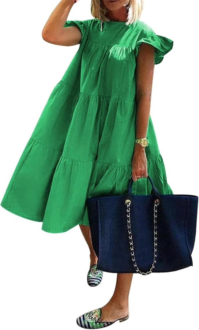 Summer Dresses for Women 2023,Plus Size Casual Cute Babydoll Dress,Tiered Ruffle Flowy Boho Beach Sundress