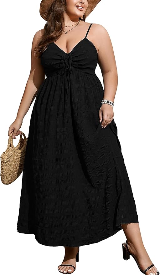 Women's Plus Size Summer Dress Spaghetti Strap Sleeveless Sweetheart Neck Swing A Line Maxi Long Dress