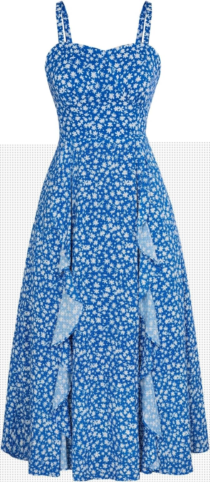 Women Floral Corset Dress, Boho Summer Spaghetti Straps Square Neck Casual Midi Dress Flowy Slit Bustier Dresses